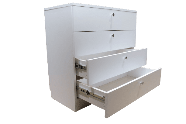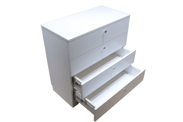 Comodă albă din PAL cu 4 sertare și butoni metalici 8681SM MR